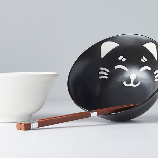 Bowl Set 2pcs with Chopsticks Cat Face Design
