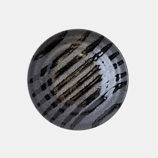 Pasta Bowl Flat 23cm Black Stripes On Gunmetal Glaze