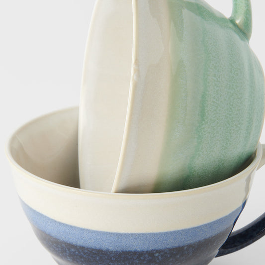 Mug Set 2pcs 380ml Blue Mint White Glaze