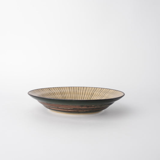 Bowl Shallow Flat Based 20cm Green Converging Line Glaze