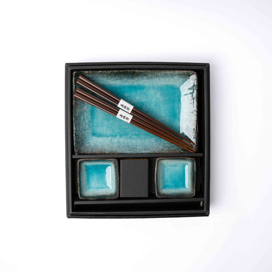Sushi Set for Two with Chopsticks Sky Blue Glaze