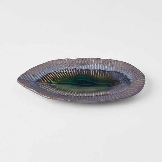 Plate Leaf Shape 32.5x13.5cm Midori Ridge Glaze