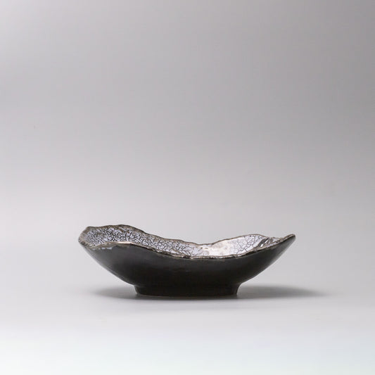 Sashimi Plate Inbuilt Sauce Dish 25cm Black Bamboo Glaze