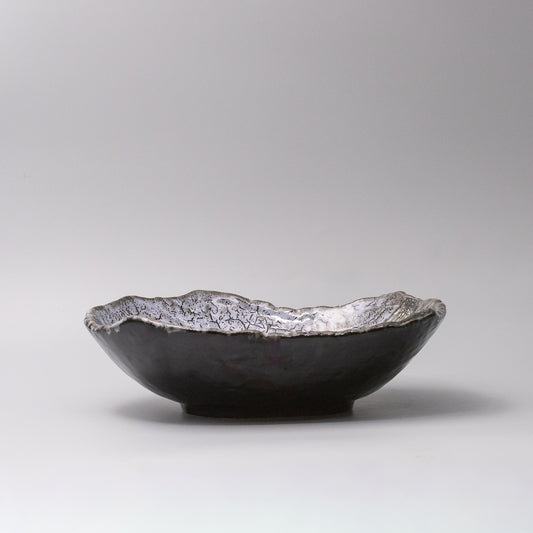 Dumpling Plate 33cm Sumi Brushstroke Glaze