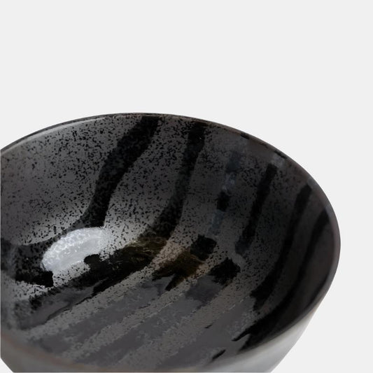 Udon Bowl Fluted 17cm Gloss Black Stripes On Gunmetal Glaze