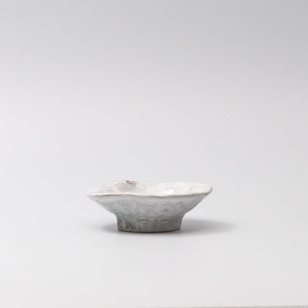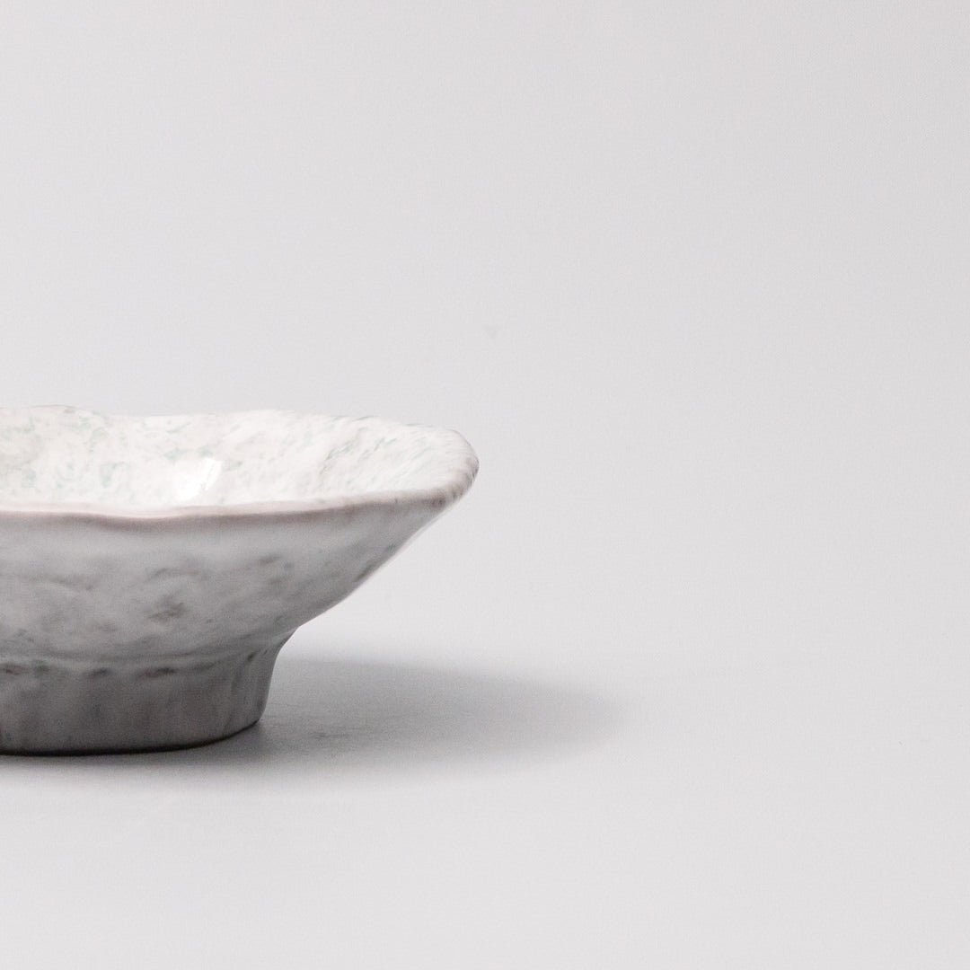 A handcrafted sauce dish with a gently flared, organic shape, with an aqua splash glaze that pools beautifully at the centre.