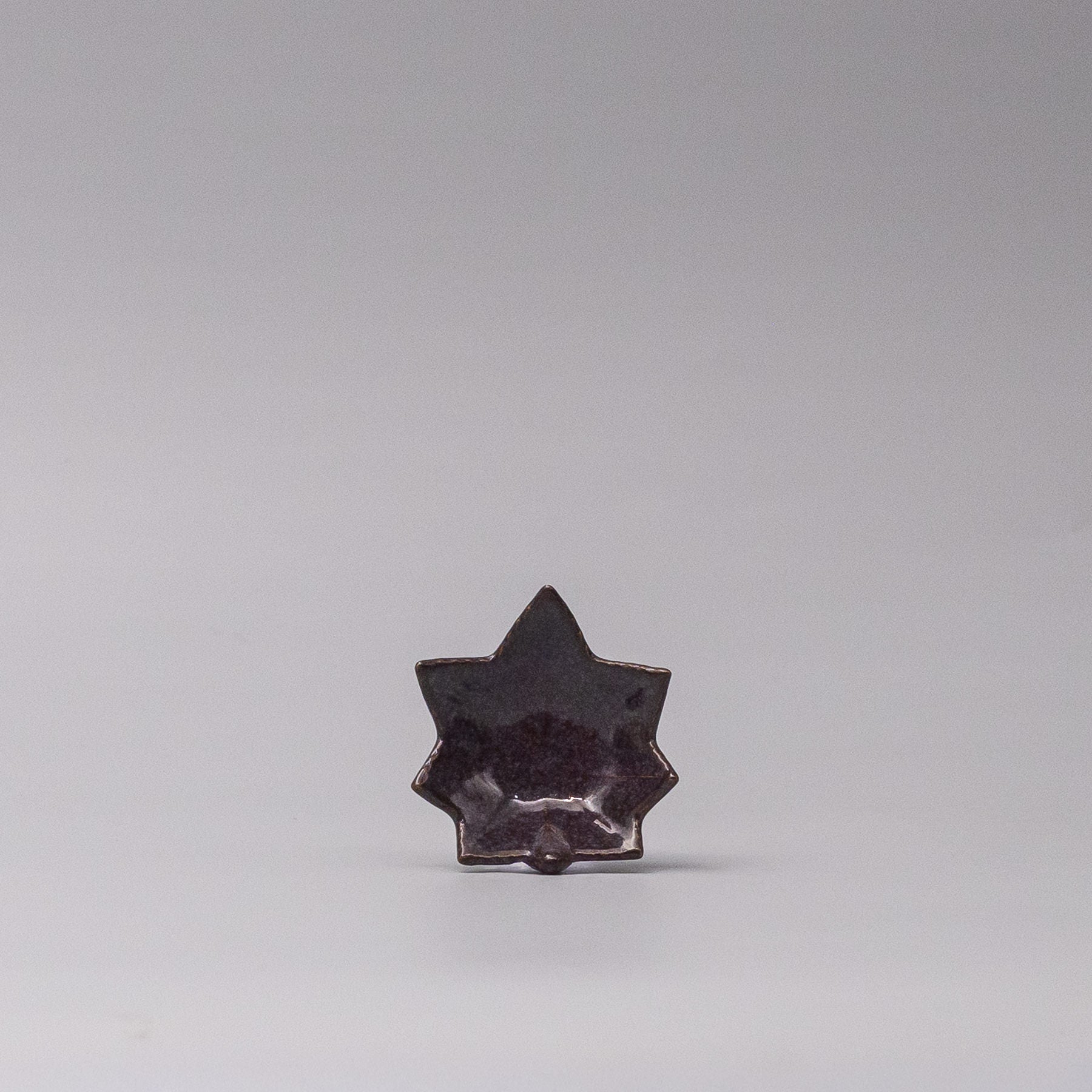 A delicate leaf-shaped design finished in a rich purple glaze with subtle tonal variation Ideal for serving soy sauce, condiments, or small accompaniments.