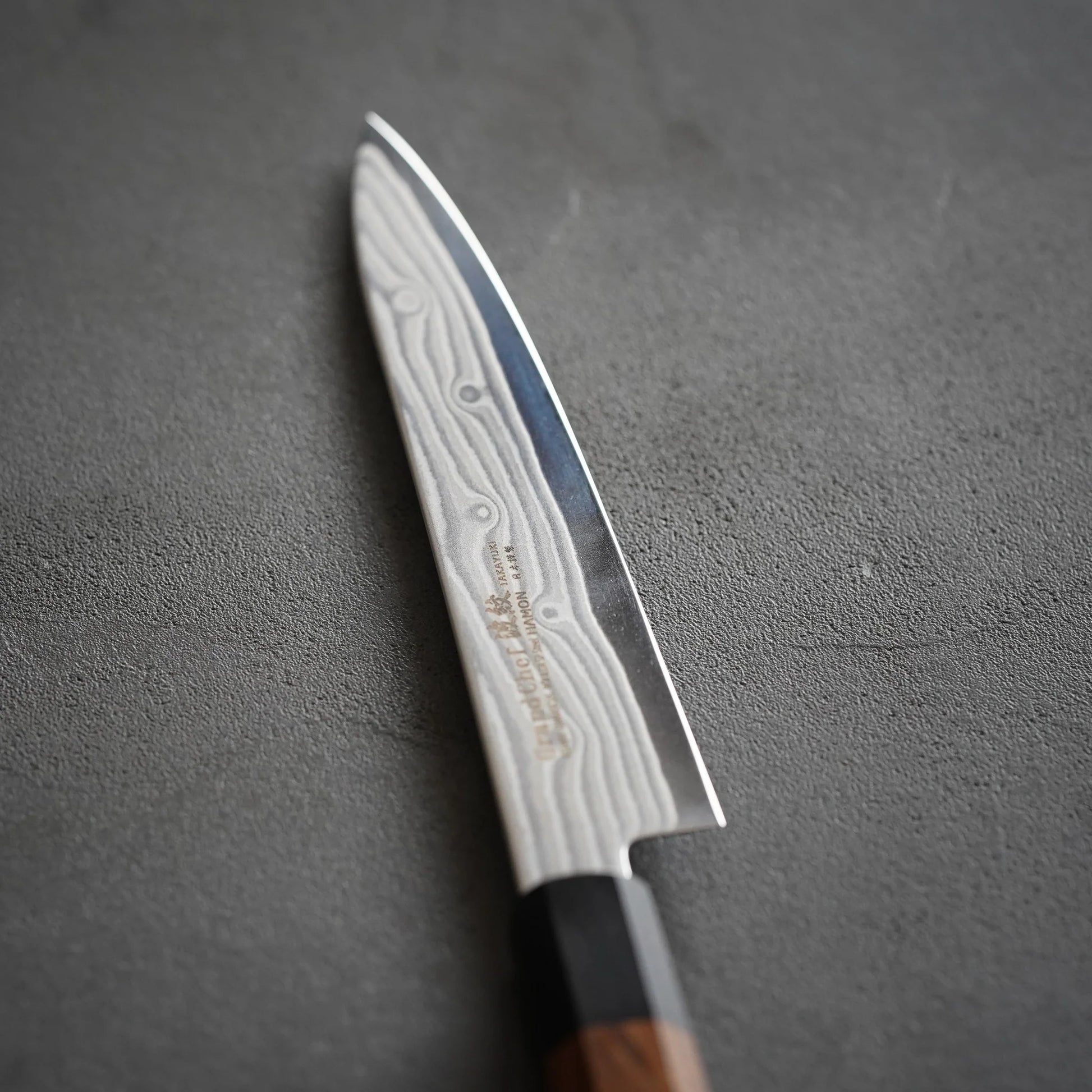 The Sakai Takayuki Grand Chef Hamon Wa Petty 150mm is a professional-grade Japanese utility knife that blends traditional craftsmanship with advanced European steel technology. Hand-finished in Sakai, Japan, it is designed for precision, elegance, and everyday functionality.