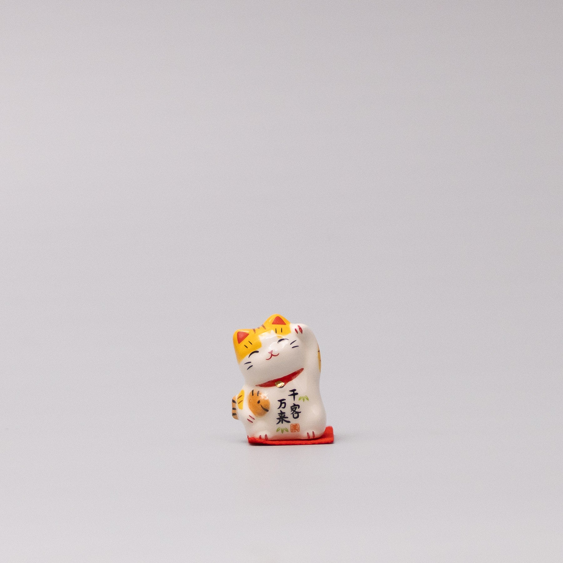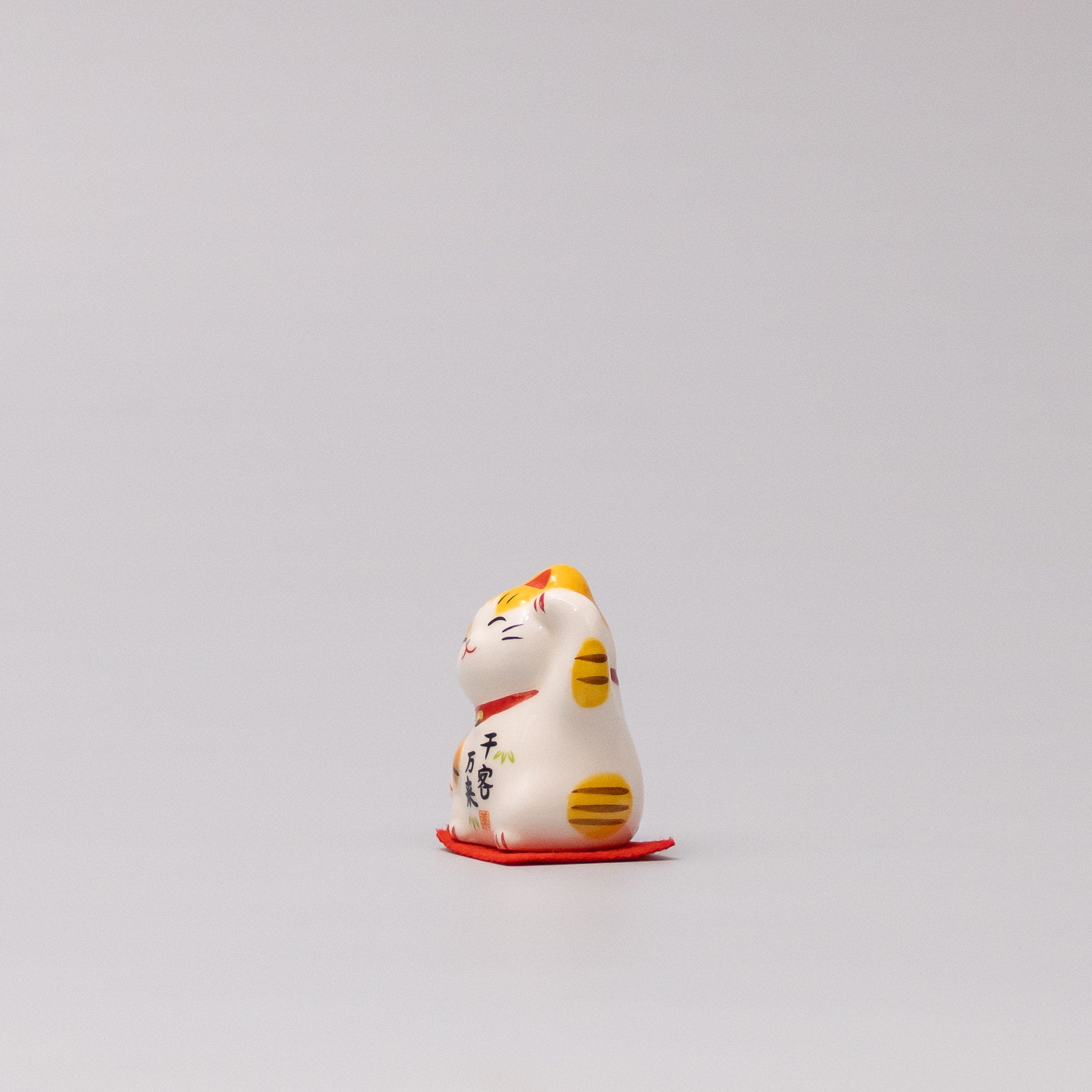 Maneki-neko okimono with raised paw symbolising success in business and growing prosperity — a meaningful gift for entrepreneurs, new ventures, or career milestones.