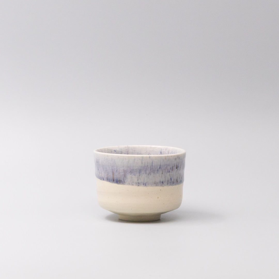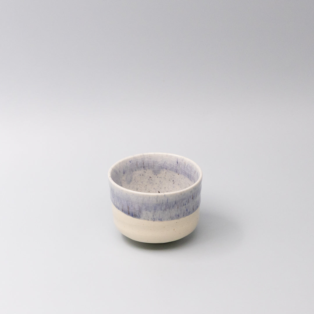Featuring a soft indigo glaze that gently fades into a natural clay base, the bowl showcases a delicate speckled texture and subtle crackle finish.