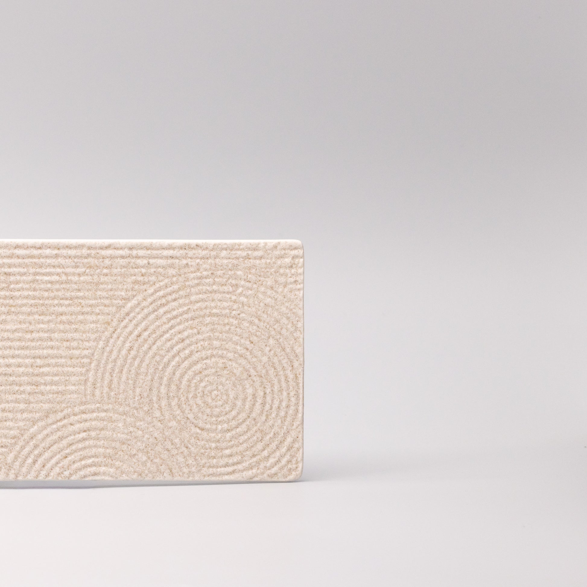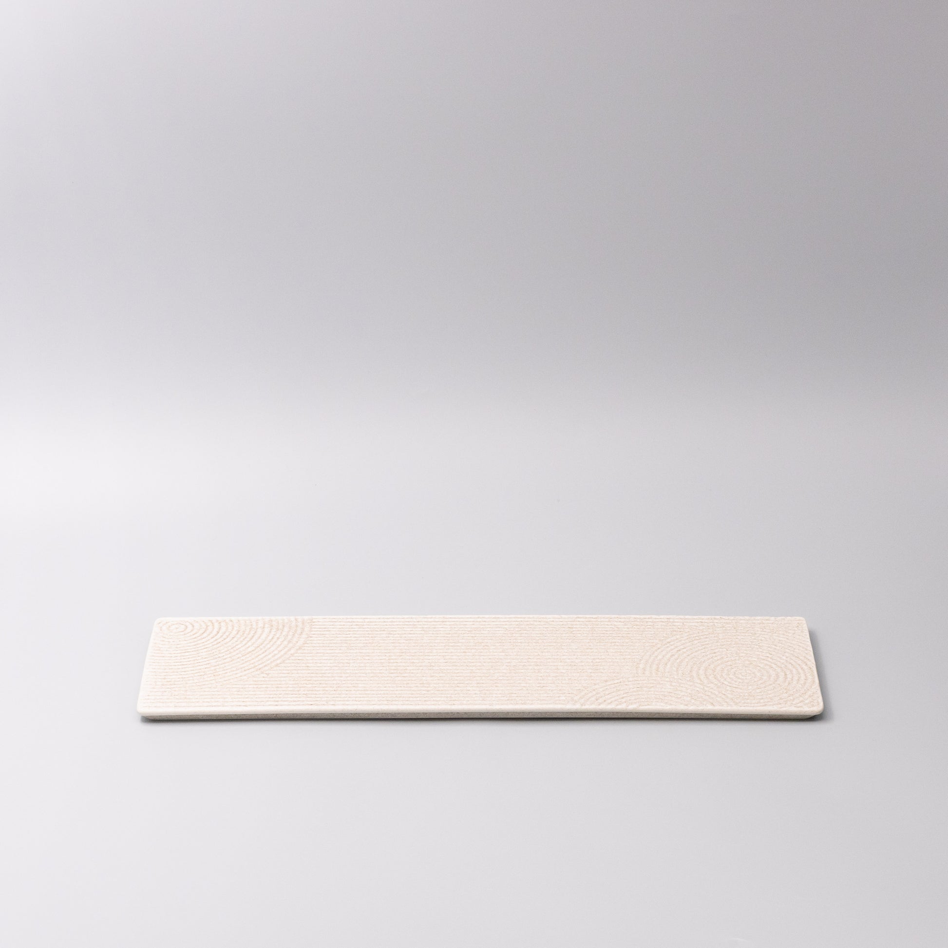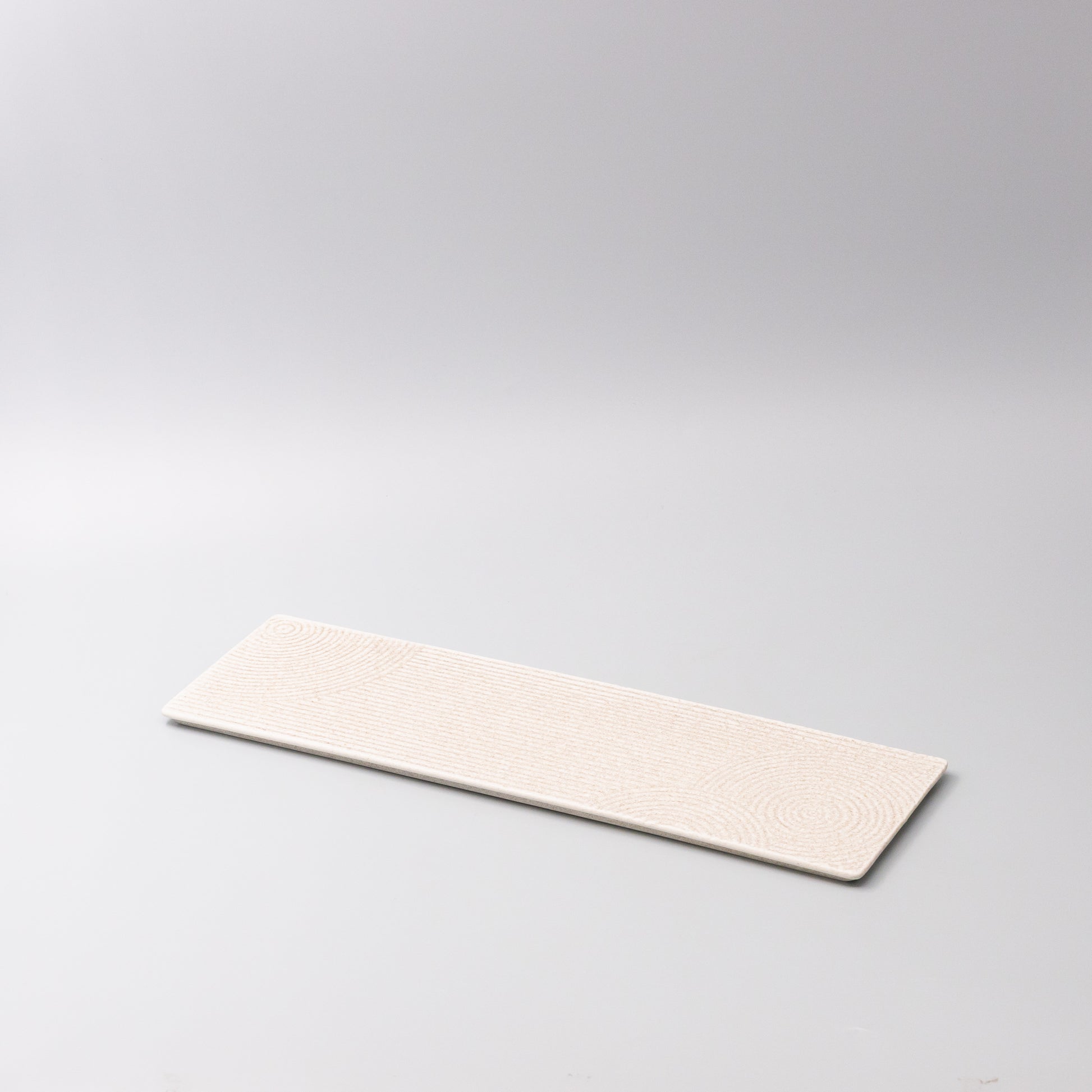 The Rectangular Platter in Zen Garden Glaze evokes the calm, meditative beauty of raked sand and flowing patterns found in traditional Japanese gardens. Its soft, layered glaze features gentle tonal variations that create a serene, organic texture across the surface.